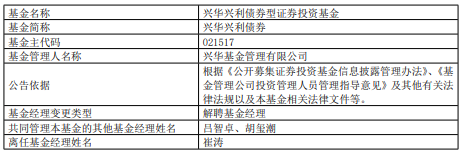 中国经济网北京1月26日讯 今日,兴华基金公告,崔涛离任兴华兴利债券。
