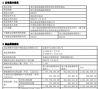 中国经济网北京1月27日讯 今日,南方基金发布南方惠益稳健添利债券型证券投资基金基金合同生效公告。