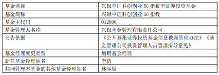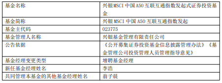 中国经济网北京1月29日讯 今日,兴银基金公告,兴银上证科创板综合价格ETF、兴银国证新能源车电池ETF、兴银中证科创创业50指数、兴银MSCI中国A50互联互通指数发起、兴银中证全指公用事业指数发起增聘李浩。
