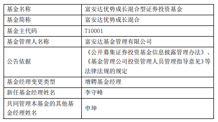 中国经济网北京2月2日讯 近日,富安达基金公告,富安达优势成长混合、富安达消费主题混合增聘李守峰。