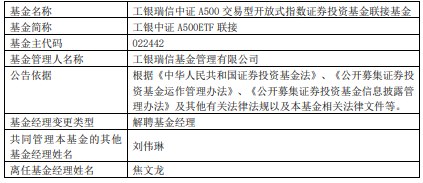 中国经济网北京2月9日讯 近日,工银瑞信基金公告,焦文龙离任工银中证A500ETF联接。
