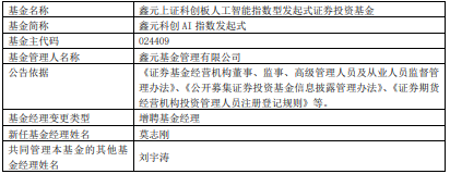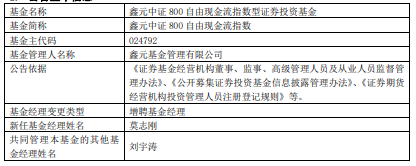 中国经济网北京2月11日讯 今日,鑫元基金公告,鑫元科创AI指数发起式、鑫元中证800红利低波动ETF联接、鑫元中证800自由现金流指数、鑫元中证800红利低波动ETF增聘莫志刚。