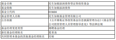 中国经济网北京2月24日讯 近日,民生加银基金公告,民生加银添润债券、民生加银鹏程混合增聘夏荣尧。
