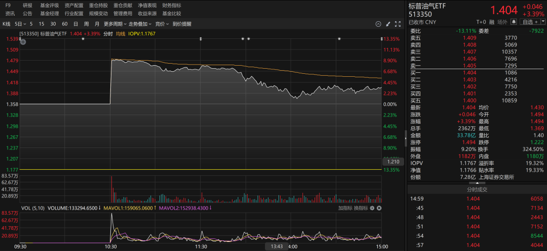 油气主题ETF大涨