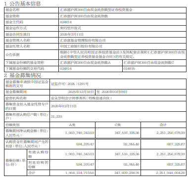 中国经济网北京3月12日讯 今日,汇添富基金发布汇添富沪深300自由现金流指数型证券投资基金基金合同生效公告。