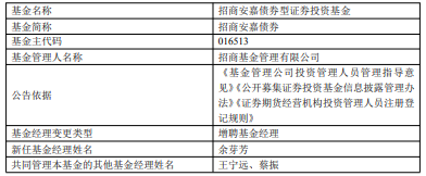 中国经济网北京3月12日讯 今日,招商基金公告,招商安嘉债券增聘余芽芳。