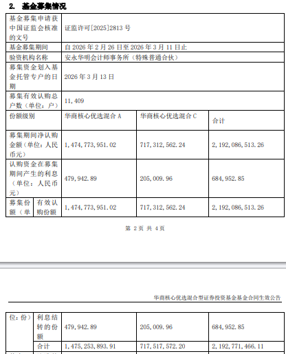 中国经济网北京3月16日讯 近日,华商基金发布华商核心优选混合型证券投资基金基金合同生效公告。