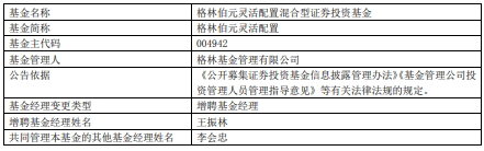中国经济网北京3月16日讯 近日,格林基金公告,格林伯元灵活配置增聘王振林。