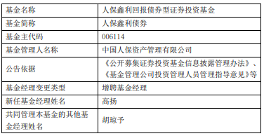 中国经济网北京3月17日讯 今日,中国人保资产管理有限公司公告,人保鑫利债券增聘高扬。