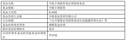 中国经济网北京3月17日讯 今日,中欧基金公告,中欧丰利债券增聘袁田。