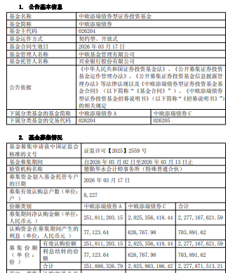 中国经济网北京3月18日讯 今日,中欧基金发布中欧添瑞债券型证券投资基金基金合同生效公告。