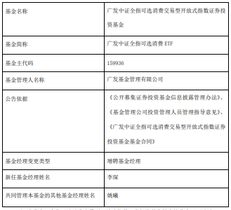 中国经济网北京3月24日讯 今日,广发基金公告,广发中证主要消费ETF、广发中证全指可选消费ETF增聘李琛。