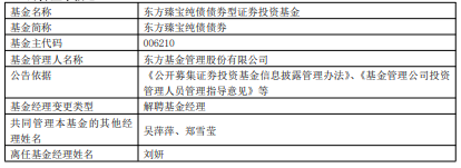 中国经济网北京3月25日讯 今日,东方基金公告,刘妍离任东方臻宝纯债债券。