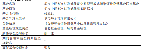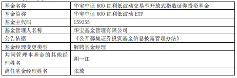 中国经济网北京3月26日讯 今日,华宝基金公告,张放离任华宝中证800红利低波动ETF、华宝中证800红利低波动ETF联接。