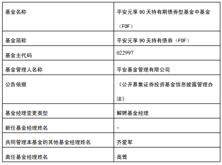中国经济网北京3月26日讯 今日,平安基金公告,高莺离任平安元享90天持有债券(FOF)。