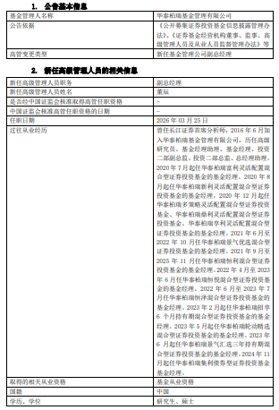中国经济网北京3月27日讯 今日,华泰柏瑞基金公告,任命董辰为副总经理。