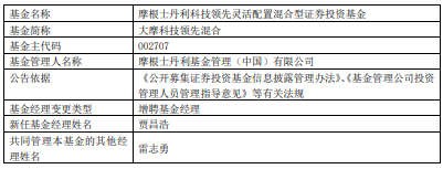 中国经济网北京3月30日讯 近日,摩根士丹利基金公告,大摩科技领先混合增聘贾昌浩。
