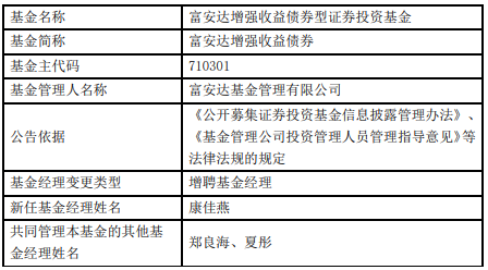 中国经济网北京3月31日讯 今日,富安达基金公告,富安达增强收益债券增聘康佳燕。