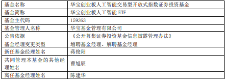 中国经济网北京4月1日讯 今日,华宝基金公告,华宝创业板人工智能ETF、华宝创业板人工智能ETF发起式联接增聘蒋俊阳,陈建华离任。