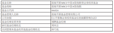 中国经济网北京4月2日讯 今日,前海开源基金公告,前海开源MSCI中国A股指数增聘周双志。