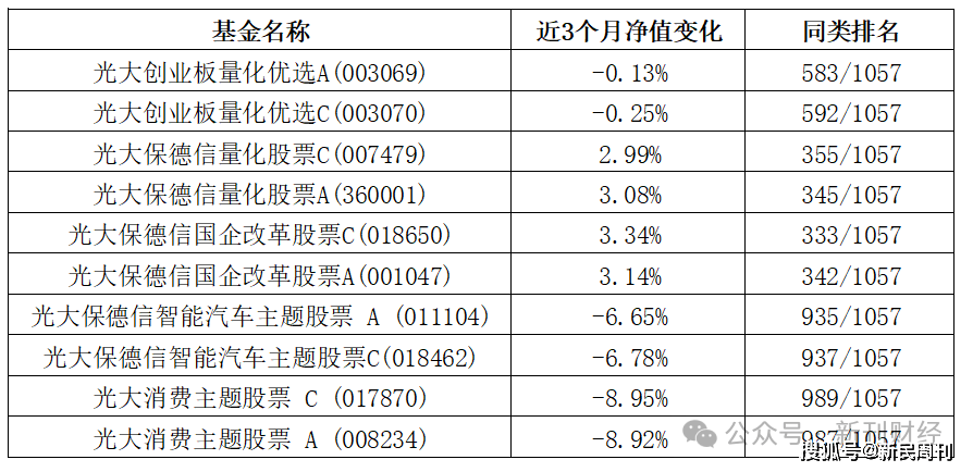 公司上述10只股票型基金在同类基金中的排名也相对靠后,其中4只基金在1057只同类基金中排名接近1000名,其余6只基金排名也在300-600名的区间范围,凸显出光大保德信基金在权益类业务方面的不足和挑战。