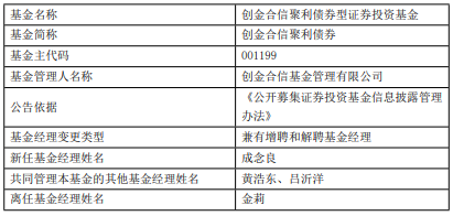 中国经济网北京4月10日讯 今日,创金合信基金公告,创金合信聚利债券增聘成念良,金莉离任。
