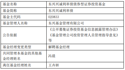 中国经济网北京4月15日讯 今日,东兴基金公告,王卉妍离任东兴兴诚利率债。