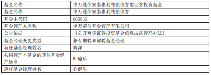 中国经济网北京4月16日讯 今日,申万菱信基金公告,申万菱信安泰惠利纯债债券增聘姚洋,乔健生离任。