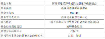 中国经济网北京4月16日讯 今日,浙商基金公告,浙商智选新兴产业混合、浙商智选经济动能混合增聘钦振浩。