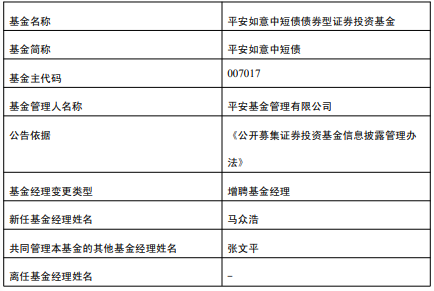 中国经济网北京4月16日讯 今日,平安基金公告,平安如意中短债增聘马众浩。