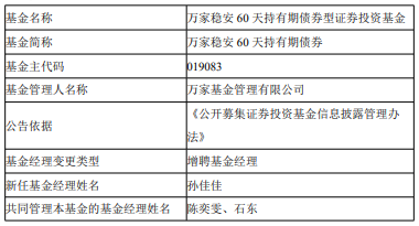 中国经济网北京4月17日讯 今日,万家基金公告,万家稳安60天持有期债券增聘孙佳佳。