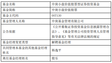 中国经济网北京4月17日讯 今日,中庚基金公告,殷乐离任中庚小盘价值股票,韩逸平管理。