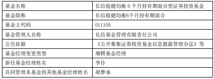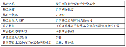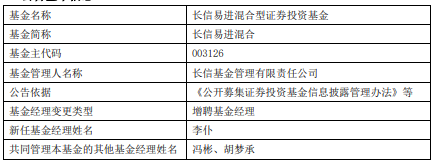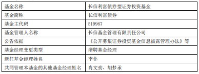 中国经济网北京4月20日讯 近日,长信基金公告,长信利富债券、长信稳健均衡6个月持有期混合、长信易进混合、长信利保债券、长信稳健成长混合增聘李仆。