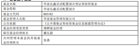 中国经济网北京4月20日讯 近日,华富基金公告,华富弘鑫灵活配置混合、华富益鑫灵活配置混合增聘戴弘毅。