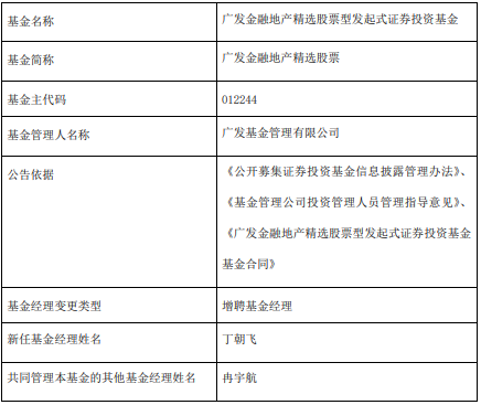 中国经济网北京4月20日讯 近日,广发基金公告,广发金融地产精选股票增聘丁朝飞。