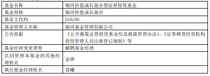中国经济网北京4月20日讯 近日,银河基金公告,袁曦离任银河价值成长混合,金烨管理。