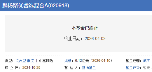 中国经济网北京4月20日讯 近日,鹏扬基金发布鹏扬聚优睿选混合型证券投资基金清算报告。