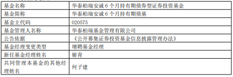 中国经济网北京4月23日讯 今日,华泰柏瑞基金公告,华泰柏瑞安诚6个月持有期债基增聘姬青。