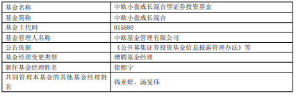 中国经济网北京4月24日讯 今日,中欧基金公告,中欧小盘成长混合增聘徐熙宁。
