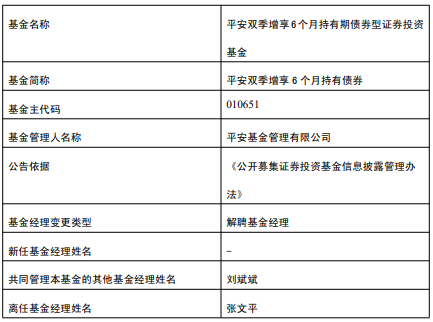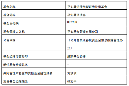 中国经济网北京4月24日讯 今日,平安基金公告,张文平离任平安鼎信债券、平安双季增享6个月持有债券。