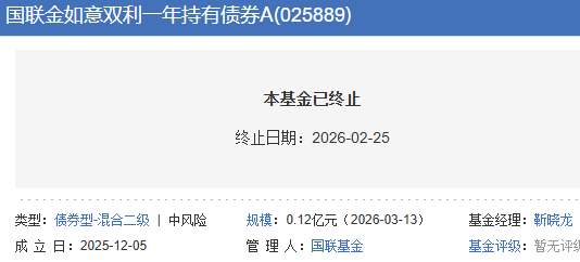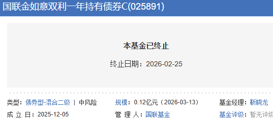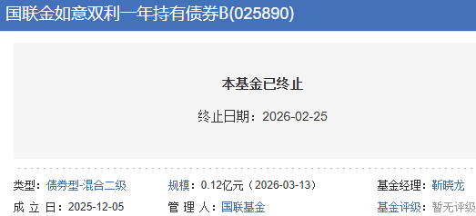 该基金最后运作日为2026年2月24日,自2026年2月25日(最后运作日的下一日)起进入清算程序。