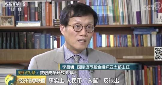 国际货币基金组织亚太部主任 李昌镛:随着中国经济持续发展,中国在世界经济的比重增加以及中国自身经济体量增加,人民币的使用会增加更多的国家,会愿意持有人民币作为外汇储备。