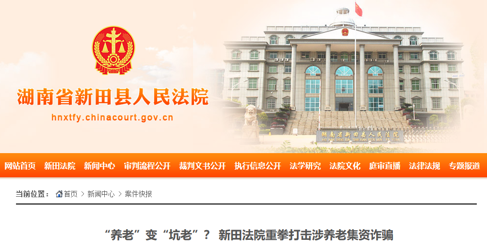 "养老"变"坑老"? 新田法院重拳打击涉养老集资诈骗