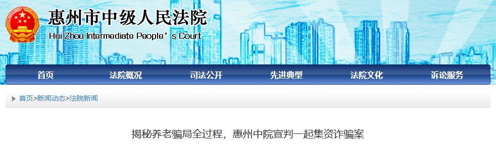 中国经济网北京6月2日讯 近年来,养老诈骗套路频出,老年人的“钱袋子”多有损失,以免费送鸡蛋大米等为诱饵,将老年人的积蓄收入囊中,成为不法分子常用的诈骗手段之一。5月30日下午,惠州市中级人民法院对一起养老集资诈骗案进行宣判。