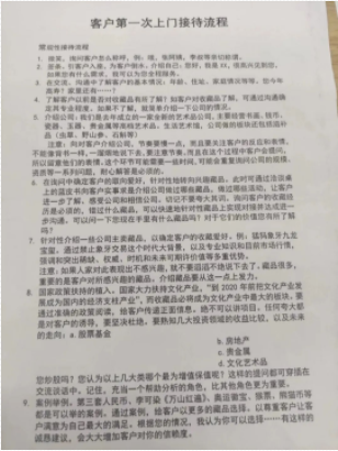 第二次接待,则要“通过真诚的沟通,让客户把自己当成孩子或者朋友一样”,要了解客户的大致收入情况,以便推荐藏品。