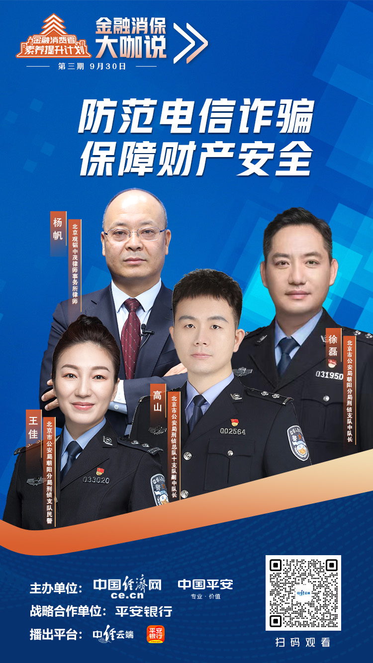 中国经济网北京9月30日讯 由中国经济网联合中国平安推出的《金融消保大咖说》节目于今日播出,本期节目的话题是“防范电信诈骗 保障财产安全”。9月2日,第十三届全国人民代表大会常务委员会第三十六次会议表决通过《中华人民共和国反电信网络诈骗法》(以下简称“反电信网络诈骗法”),自12月1日起施行。北京观韬中茂律师事务所律师杨帆在节目对反电信网络诈骗法进行了解读。