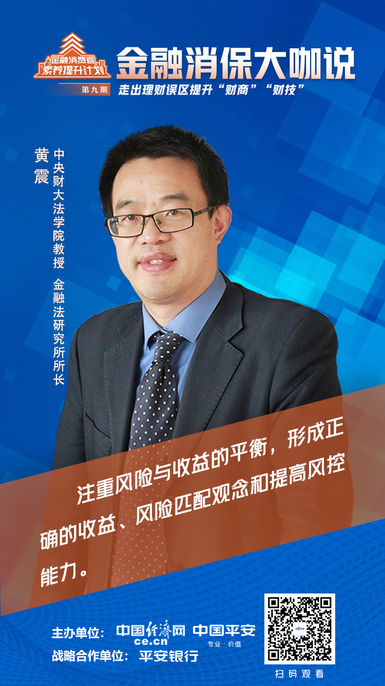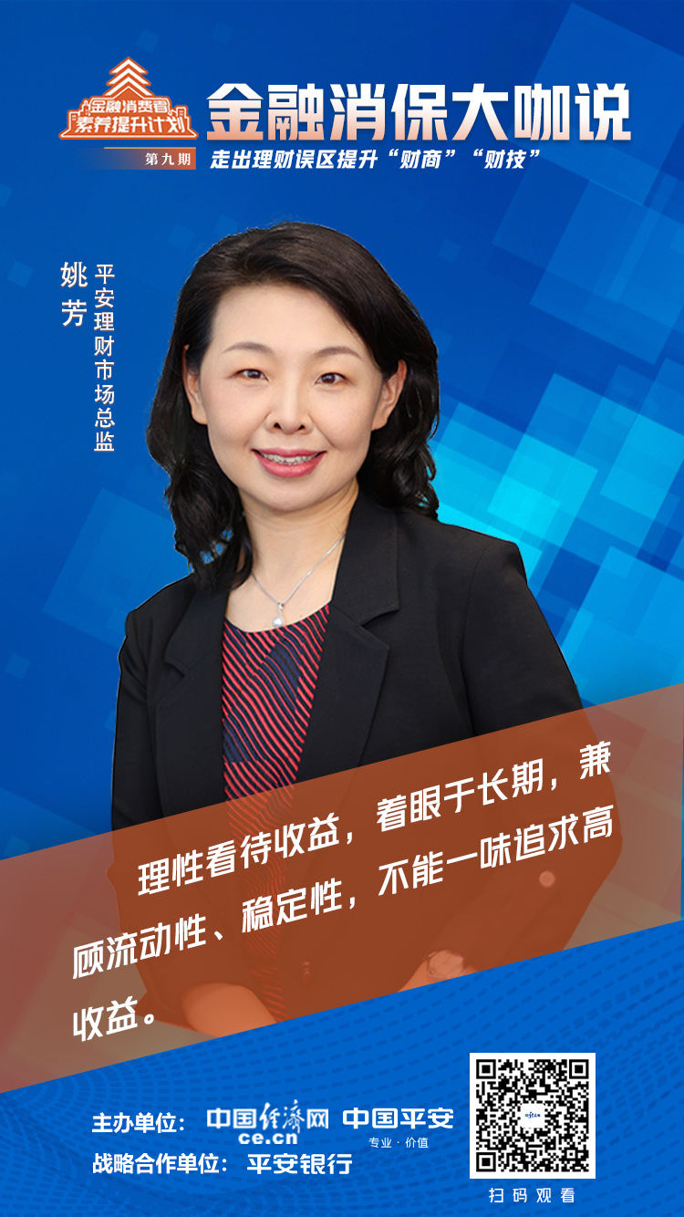 由中国经济网联合中国平安推出的《金融消保大咖说》节目于2023年5月9播出,本期节目的话题是“走出理财误区 提升‘财商’‘财技’”。中央财大法学院教授、金融法研究所所长黄震在节目中向投资者强调,在追求收益的时候一定要注意理财的风险性,注重风险与收益的平衡。平安理财市场总监姚芳更关注工薪家庭理财,她在节目中呼吁工薪家庭在兼顾流动性和安全性的前提下,理财时着眼于长期,尽享稳稳的幸福。