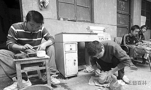 认真工作的玉匠们