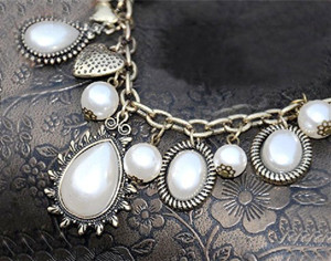 上世纪30年代,服装饰品多为廉价的人造珠宝,每次只能用来搭配一件服装,所以它的流行周期相对短暂。人造珠宝的材质多以金箔和黄铜为主,而像紫水晶、珊瑚这样的半宝石和玻璃只是用作点缀装饰。