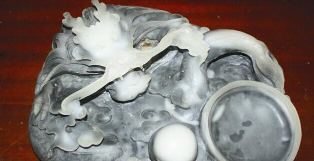 周老先生看他从蛇皮袋里拿出一个东西,是个龙形的砚台,长约20厘米,宽约10厘米,高约5厘米。砚台上满是泥土和脏水,感觉是从很深的地方挖出来似的。擦去泥水,把砚台翻过来一看,底部有“乾隆年制”四个篆书。周老先生一下来了兴趣。